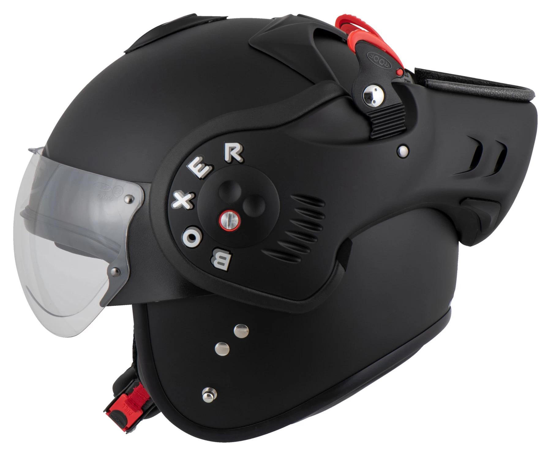 - Visière : transparente, avec revêtement antibuée