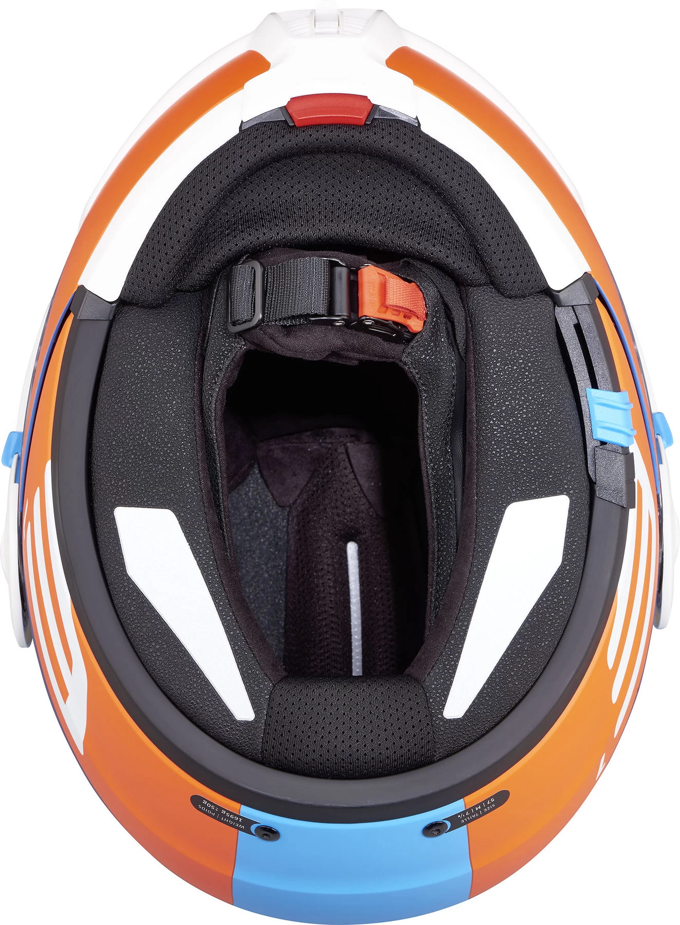 - Ventilation : entrées réglables au niveau du menton et du haut de la tête, et sorties au niveau de la nuque