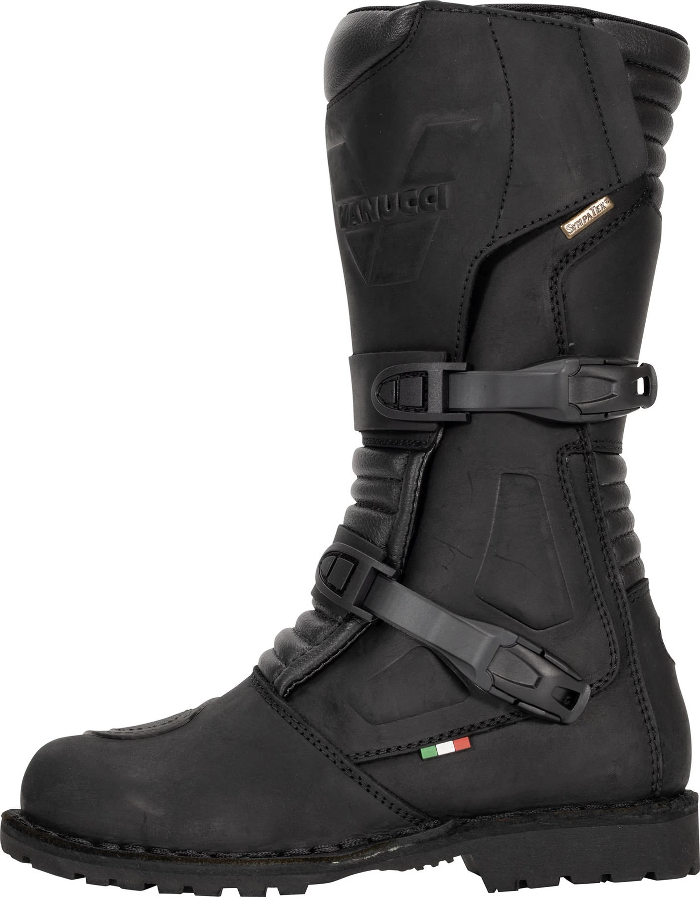 Le pari est réussi : les bottes VTB9 de Vanucci sont la combinaison parfaite entre bottes enduro et de tourisme. Ces bottes Adventure extrêmement robustes et stables en nubuck épais et souple vous offrent une grande protection contre les intempéries et un niveau de sécurité élevé. Elles sont en outre parfaitement adaptées à une petite promenade à pied, pour visiter quelques sites touristiques pendant vos pauses, que ce soit sur tout-terrain ou sur route.