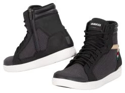 Bottes urbaines de Vanucci. Vous pensez les connaĂ®tre ? DĂ©trompez-vous ! Nous vous prĂ©sentons ici les bottes *VUB-2* de Vanucci. D’une part, il s’agit de baskets authentiques si confortables pour vos pieds qu’ils ne vous laisseront plus les retirer. D’autre part, les *VUB-2* de Vanucci sont des bottes de moto Ă part entière, robustes et dotĂ©es d’un revĂŞtement Schoeller-keprotec. ExtrĂŞmement rĂ©sistantes Ă l’abrasion, aux dĂ©chirures, Ă la chaleur et aux chutes. Voici ce que nous vous proposons : ne choisissez pas, optez pour le confort ET la sĂ©curitĂ© ! Les meilleures options pour partir en virĂ©e !
